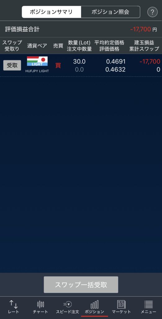 含み損▲17,700円は、スワップ23日分で回収できる計算。