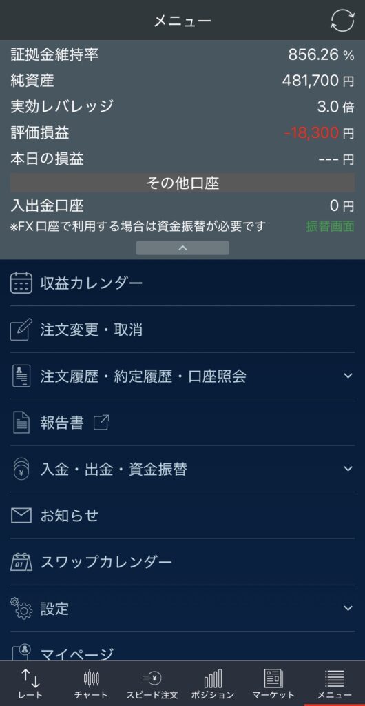 チャート画面→スピード注文→ポジション確認の動線が直感的。初見でも迷わなかった。